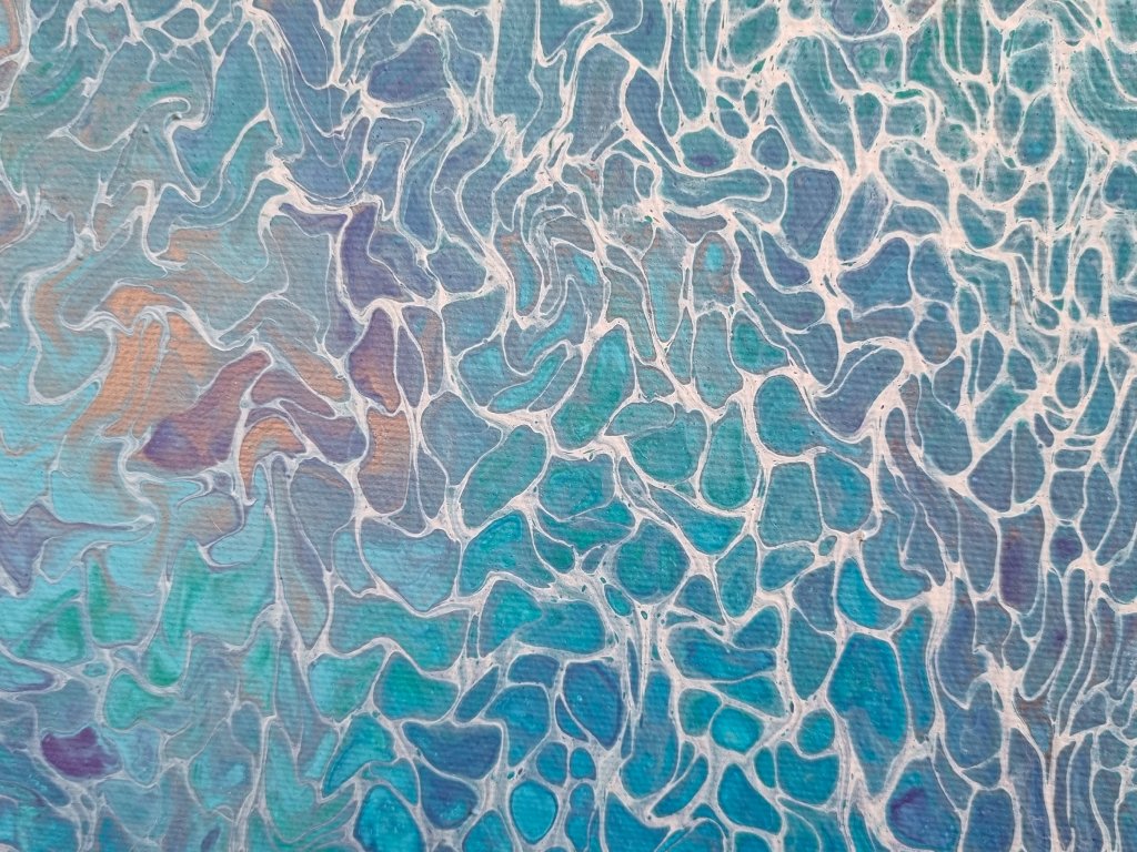 - Obraz je malovaný takzvanou pouring metodou za použití akrylových barev.