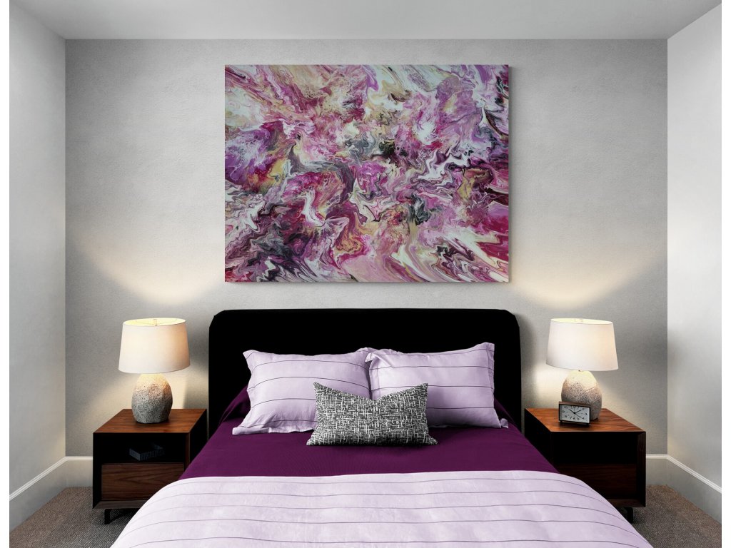 Originální ručně malovaný obraz, který vznikl pouhou fantazií. Tento nádherný obraz obohacený o zlatý pigment udělá radost milovníkům fialové barvy. Díky zlatému pigmentu je obraz naprosto dechberoucí a může se pyšnit zrovna ve Vašem interiéru.